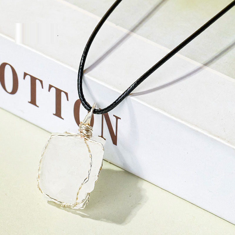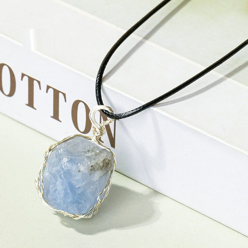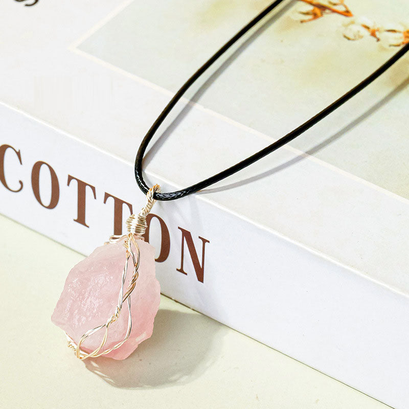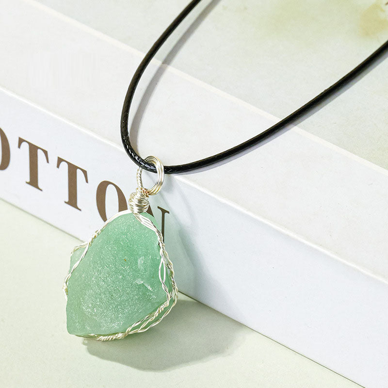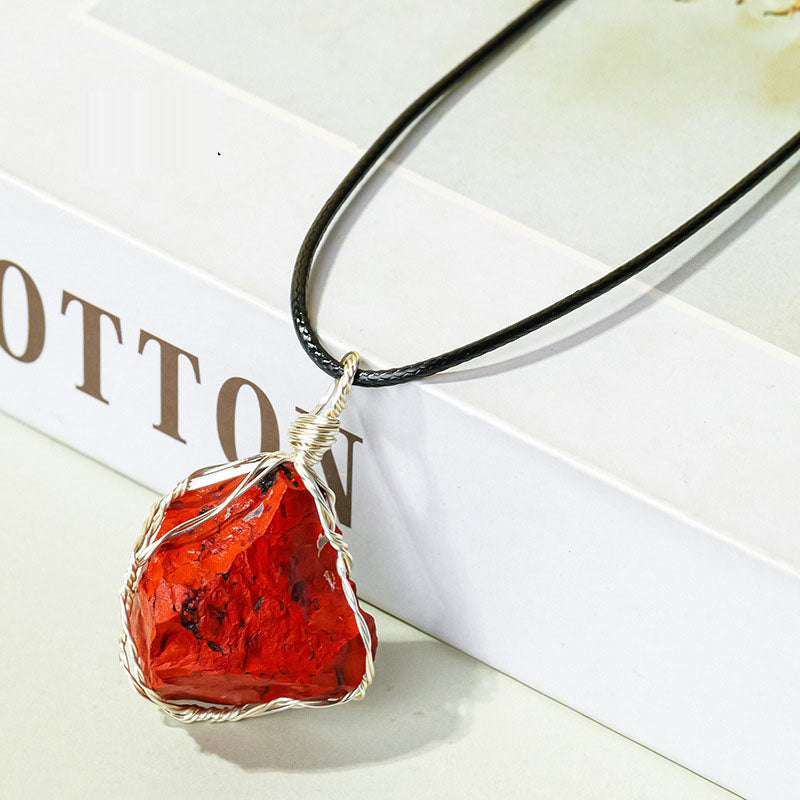 Amethyst raw stone wrapped silk pendant, handmade wrapped wire mesh bag necklace, sweater chain jewelry pendant