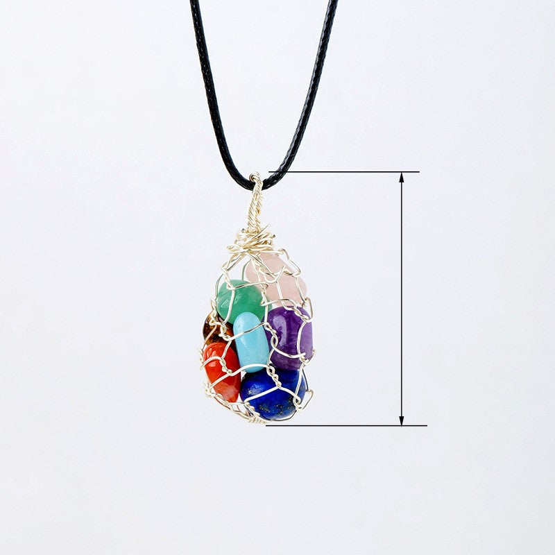 Natural Crystal Crushed Stone Rolling Stone Mesh Pendant Colorful Stone Handmade Copper Wire Wrapped Pendant Necklace Pendant